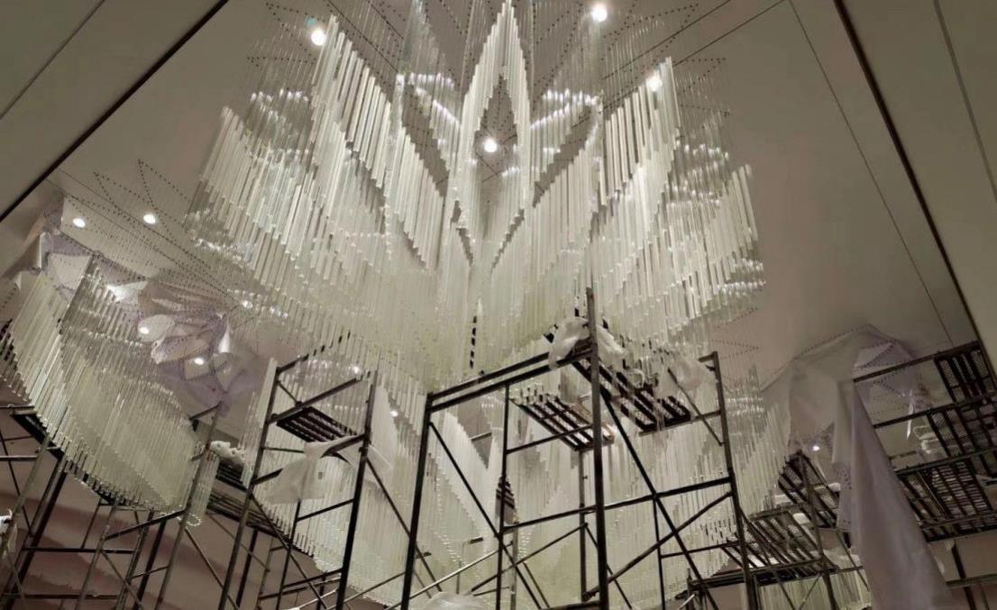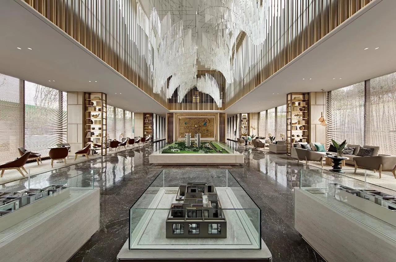 White chandelier in sales center lobby
